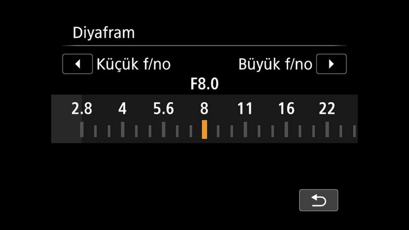 f/8 gibi orta boyutlu bir diyafram seçmek, genellikle alan derinliğinden ve enstantane hızından ödün verme miktarı açısından en uygun seçenektir. Diyafram Önceliği (Av) ve Manuel (M) pozlama modlarında diyaframı kontrol edebilirsiniz.