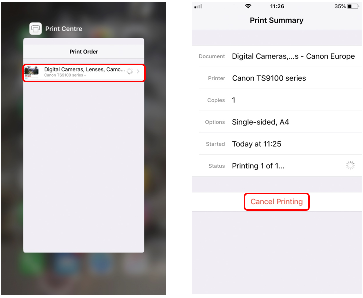 To delete a print job with AirPrint, use one of the following two methods: